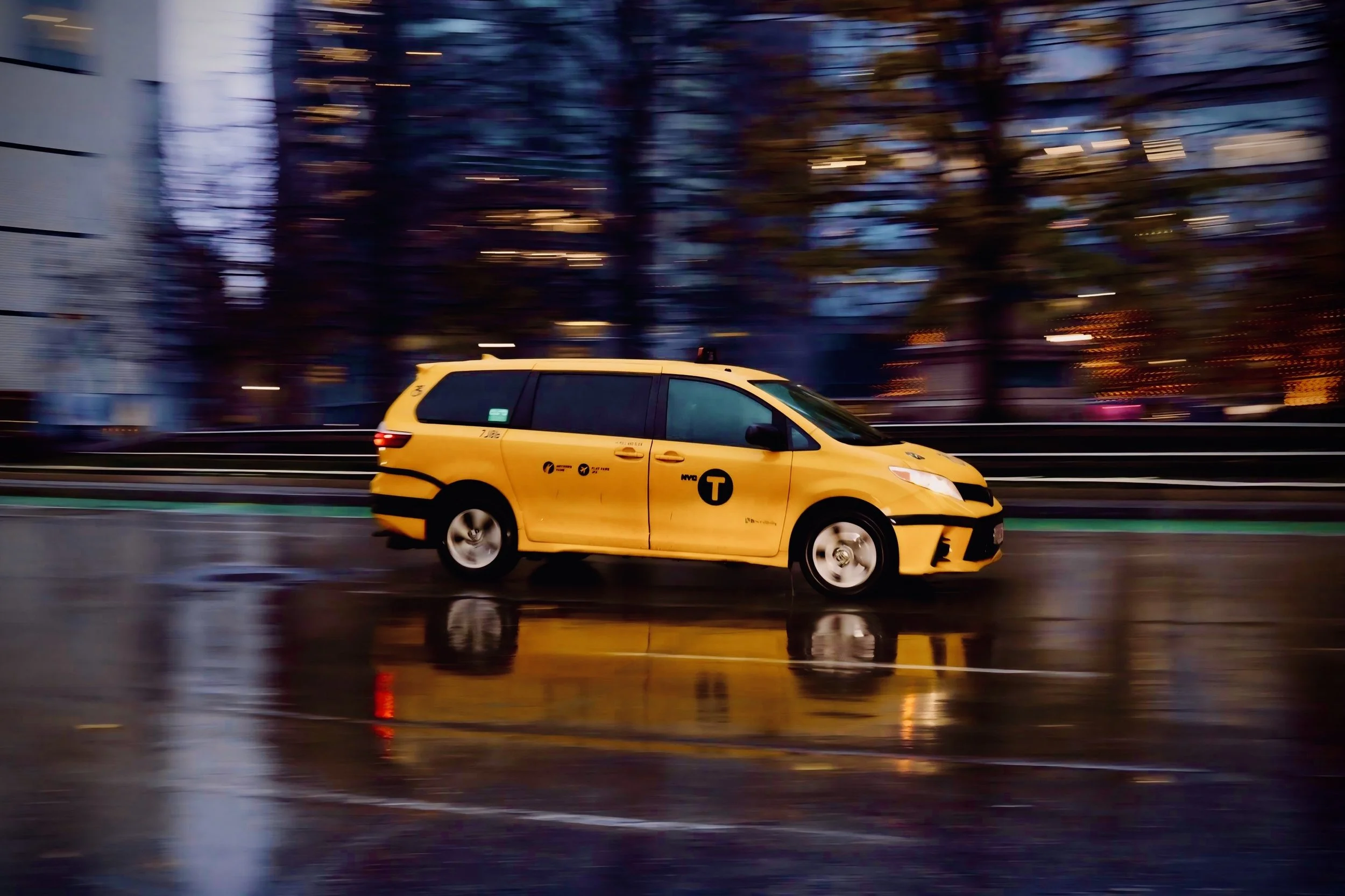 Taxicab Panning Shot, captured in a rainy NYC on a Canon EOS Rebel t6i